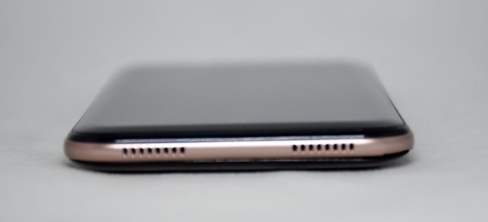 In the lower part there is a phone mesh behind which an external speaker is hidden on one side, and a microphone- on the other.