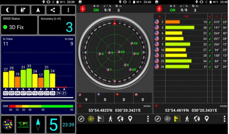 GPS and A-GPS navigation modules are responsible for the positioning of the smartphone in the terrain and in space. I have no complaints to them.
