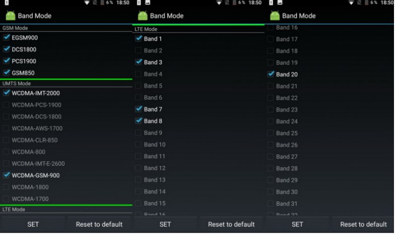 2G: GSM 850 / 900 / 1800 / 1900MHz