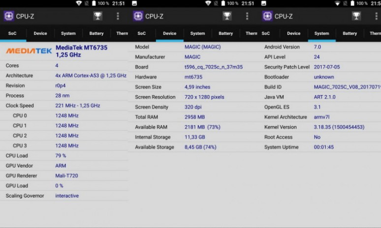 Cubot Magic operates on Android 7.0. This is quite a new operating system. I am very pleased with the fact that the manufacturer decided to save users from unnecessary software. In general, the operating system has not undergone any modifications .