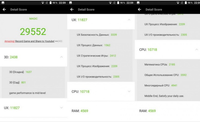 To assess the fairness of the declared technical characteristics, I used a number of applications, the screenshots of which I share below.
