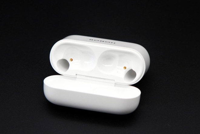 There is a USB-Type-C port on the bottom. The battery capacity of the case is 410 mAh. Charging time – an hour and a half. Total playback time – 32 hours . Wireless charging is not supported.