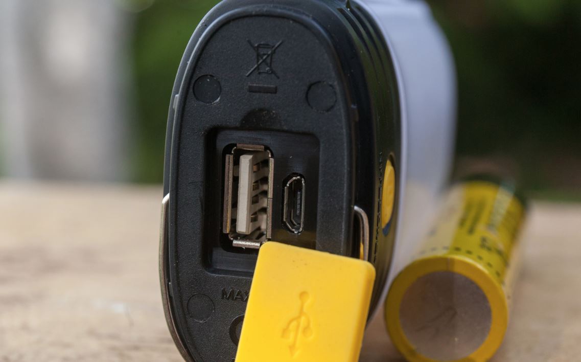 There are 2 connectors – a Micro-USB input and a standard USB output behind the thick and reliable yellow cap (it closes tightly).
