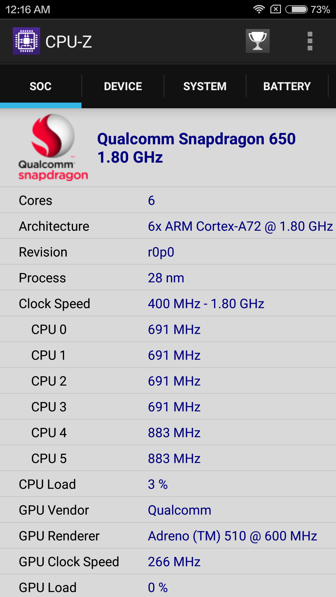 | процессор | Qualcomm Snapdragon 650 Adreno 510 |