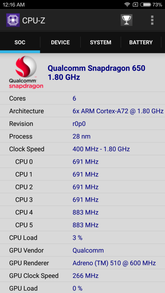 Для игрового теста выбирал достаточно тяжелые игры 3д шутеры и могу сказать что с графикой проблем не возникло,Adreno 510 конечно же намного лучше своего конкурента Mali t860 которй использует компания Mediatek в своих процессорах.