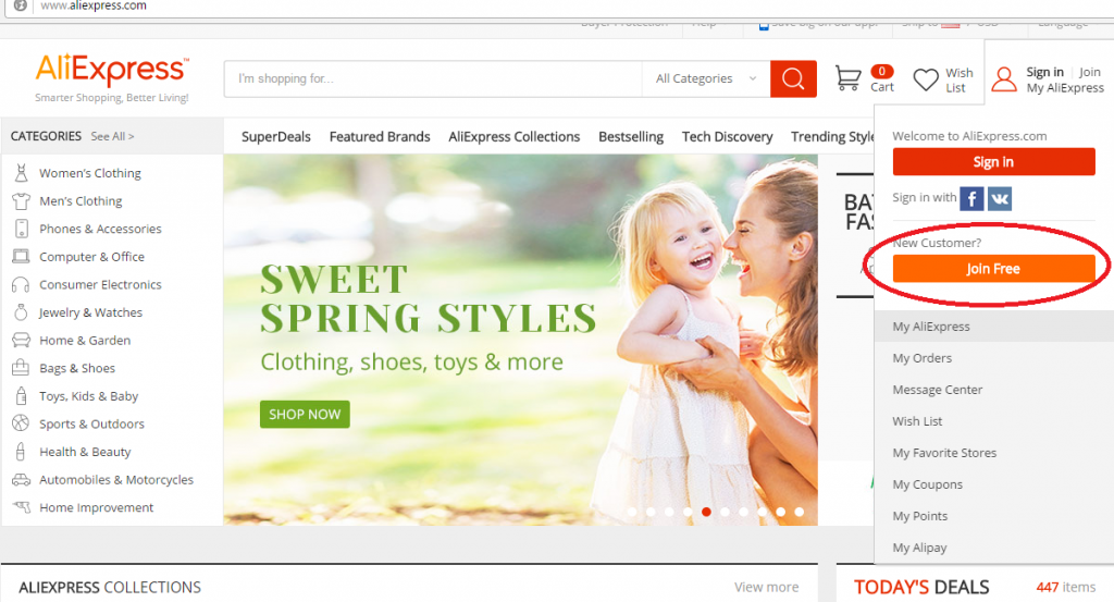 Первое что нужно сделать- это зарегистрироваться на сайте Aliexpress.Без этого вы не сможете совершать покупки и общаться с продавцами.Сайт Aliexpress.com доступен на большом количестве языков,так что вы можете перейти с английского на более удобный вам язык.