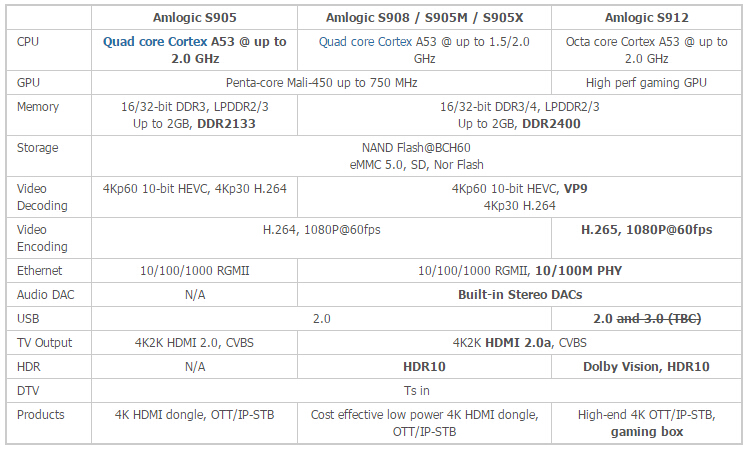 | Процессор | Amlogic s905 | Amlogic s905x | Amlogic s905x | Amlogic s905x |