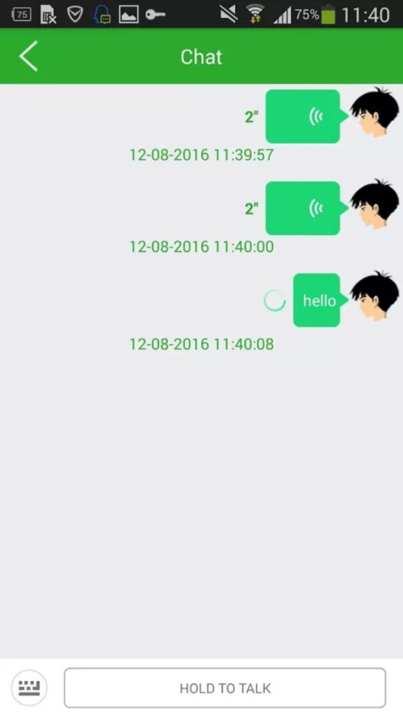 You can have a connection with your telephone by means of the “CHAT” function. Pressing the button, you can pronounce a text. As soon as we release the button, the message is immediately sent to the smartphone. You can not type the text, the text should be only pronounced! But you can type or pronounce the text on the smartphone.