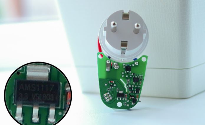 The control board is soldered to the plug with the copper stranded wires. The marking is missing, but it is similar to AWG26. The only information about the control board is the compliance with the gb5023.3-1997 certificate. The fuse is provided on the board, which can be easily removed if necessary. The voltage regulator is AMS1117 at 3.3V – it is used for the further operation of the WiFi card. You can see a power node with a galvanic isolation that is powered from the electricity network. There are even cuts in the board. The control is built on a Fanhar DC5V – 10A250VAC electromagnetic relay. This relay is designed for 1,000,000 operations.