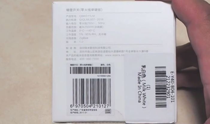 There are characteristics of the switch on the reverse side of the box, we can find some differences here. The maximum power is 2500 Watts (at 250 V – 10 A), i.e., there are 220 V in the nets – 2200 watts. Let me remind you that the switches with a live line break are designed for a maximum power of 800 watts (at 250 V). The rest is the same, you need Xiaomi or Aqara gateway to work with the switch. If you want, you can not connect it anywhere – it will work as a simple switch right out of the box.