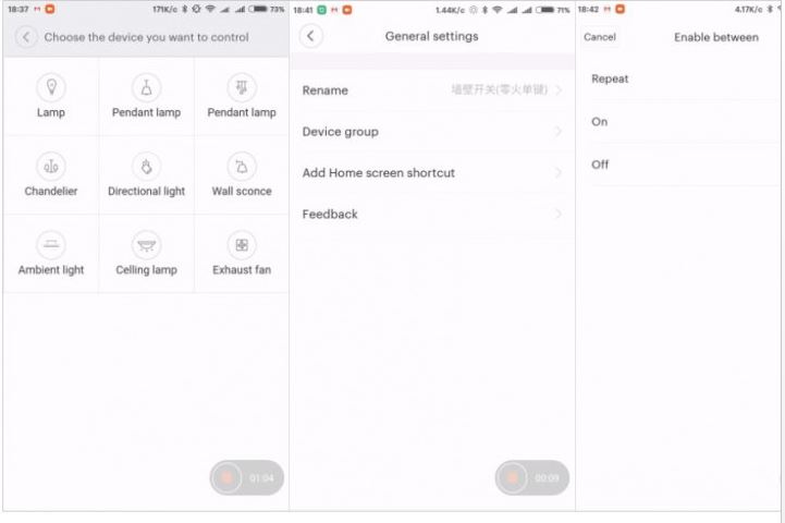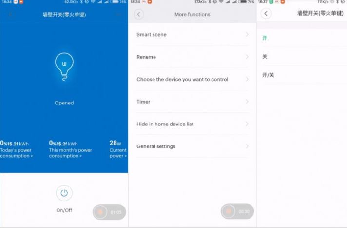 The rest of the options have not been changed. There is a choice of the luminary icon – which will be displayed in the switch plug-in plug-in and in the control panel of the gateway plug-in, there is also a possibility to rename the switch, assign it to the group to other devices, display the plug-in label on the desktop. There is a menu of timers to automate the on and off function.